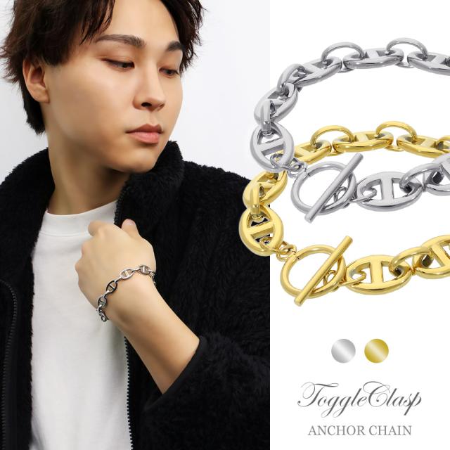 アンカーチェーン マンテル Tバー ステンレス ブレスレット 19cm シンプル ゴールド マンテルチェーン トグル トグルクラスプ チェーン 鎖 マリン