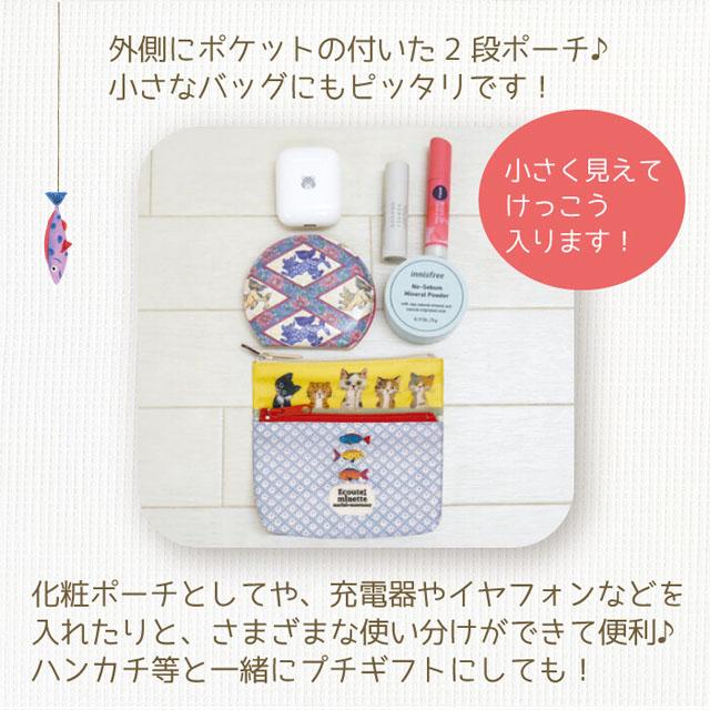 ポーチ 猫 2段 小 ミニ コンパクト 猫柄 エクートミネット 化粧ポーチ ミニポーチ 小銭入れ ねこ レディース ギフト プレゼント