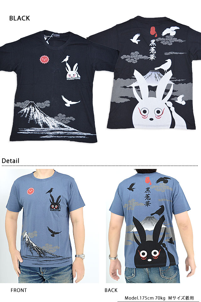何でもあり、何でもやる新ブランド「LIN」から黒菟華「カラス黒菟華」半袖Tシャツ(AL-758011)のご紹介です。 黒い兎がモチーフの「黒菟華(kurotoka)」から、新作が登場! 今回はカラスと、同じく真っ黒な佇まいの黒兎をポップにデザインしました。 背景には富士山を組み合わせ、和のテイストをプラス。 ボディーには、柔らかく薄手で肌触りの良い質感のものを採用。 | |||||||||||||||||||||||||