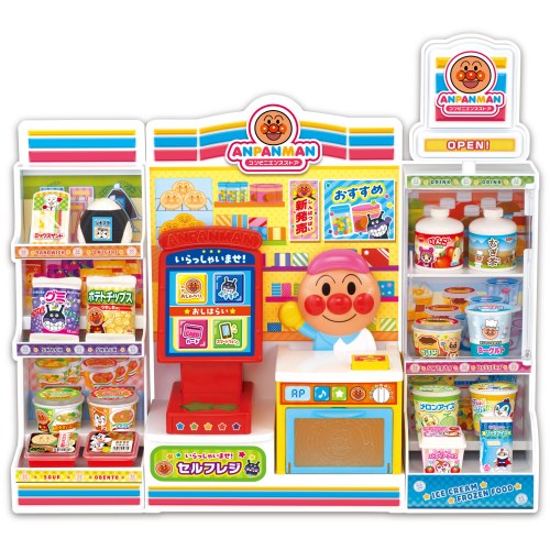 光っておしゃべりする電子レンジも加わって、アンパンマンといっしょに最新のコンビニでおみせやさんごっこが楽しめます!