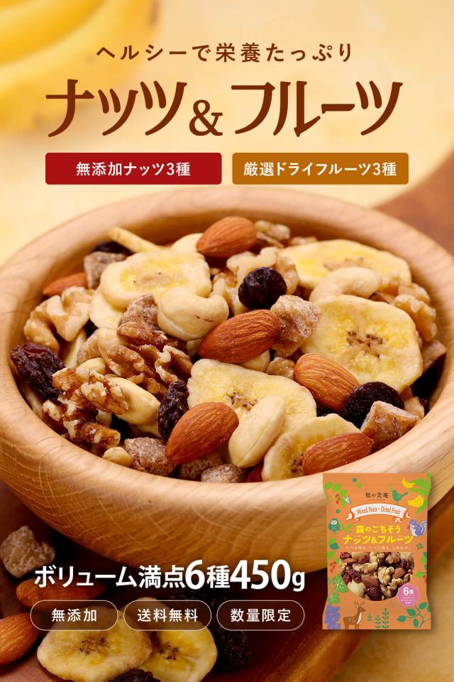 無添加ミックスナッツ3種類&ドライフルーツ3種類⇒合計6種類ボリューム満点たっぷり450g食べ放題♪ バレンタイン アーモンド 保存食 ダイエット ギフト プレゼント 贈り物 ポイント消化 ポイ活 ※冷凍商品との同梱不可