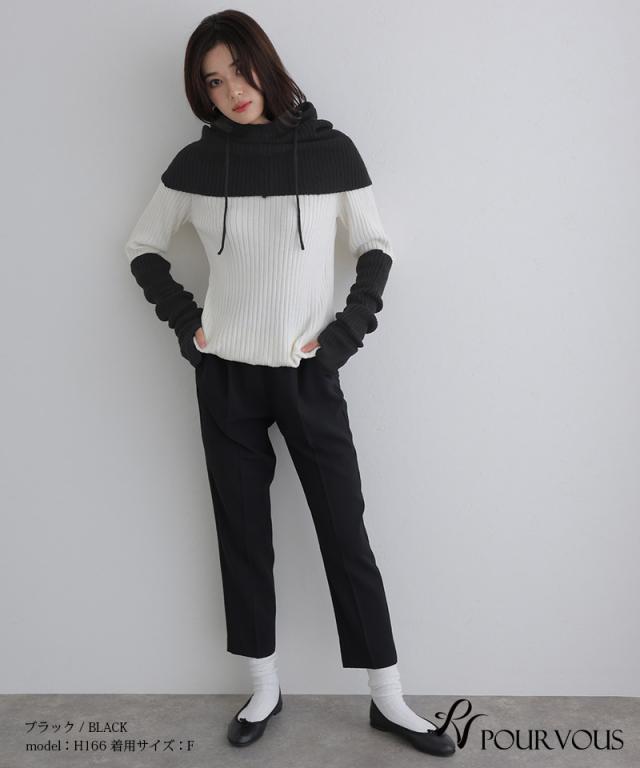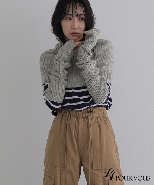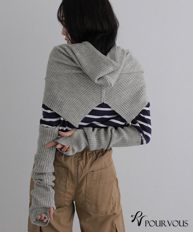 フリーサイズ シャツ オフィス レディース オフィスカジュアル レディースファッション 大きいサイズ キーネック ナチュラル アームウォーマー 大人かわいい シンプル フード ファッション おしゃれ 上品 トップス ニット きれいめ 大人可愛い ショート セーター