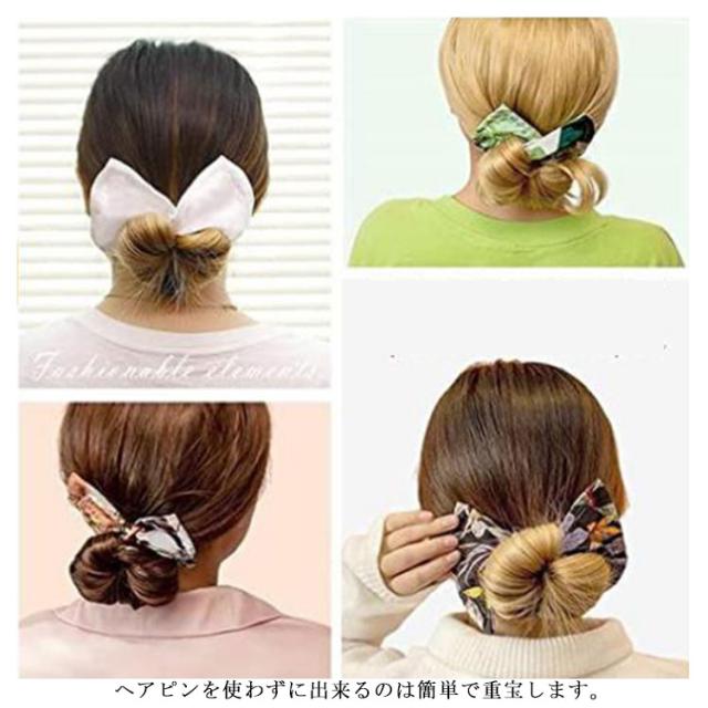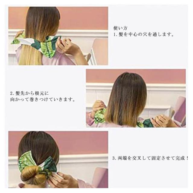 | 簡単にお団子ができるヘアバンド。 髪を通したら、両端をピンとしたまま根元までキッチリくるくるすると綺麗なお団子にしやすいです。 ヘアピンを使わずに出来るのは簡単で重宝します。 カラフルな色展開、何枚持つことがおすすめします。 | |