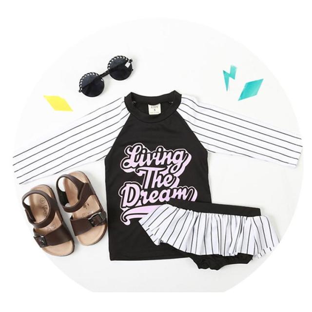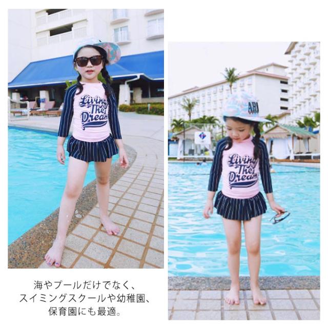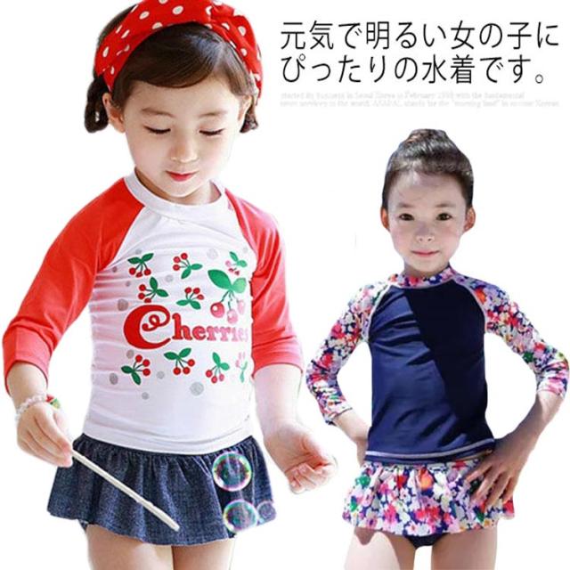 水着 子供 2点セット 女の子 セパレート 長袖 フリル スカート 子供用 インナーパンツ付き ベービ 子供水着 女児 キッズ水着 スクール水着 スイムウェア UVカット 動きやすい 可愛い かわいい お洒落 幼稚園 キッズ 小学生 子供用 温泉 海 プール 送料無料