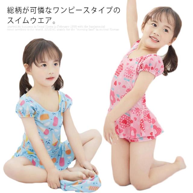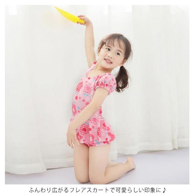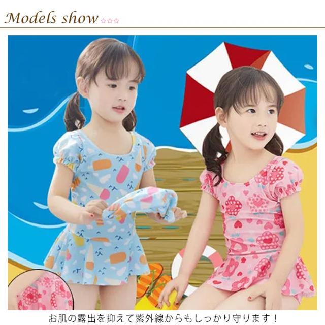 水着 女の子 ワンピース水着 半袖 スカートキッズ水着 ショットパンツ付き ベビー 子供水着 子ども スクール水着 スイムウェア UVカット 裏地付き 女児 子供用 キッズ用 水着 キュート送料無料