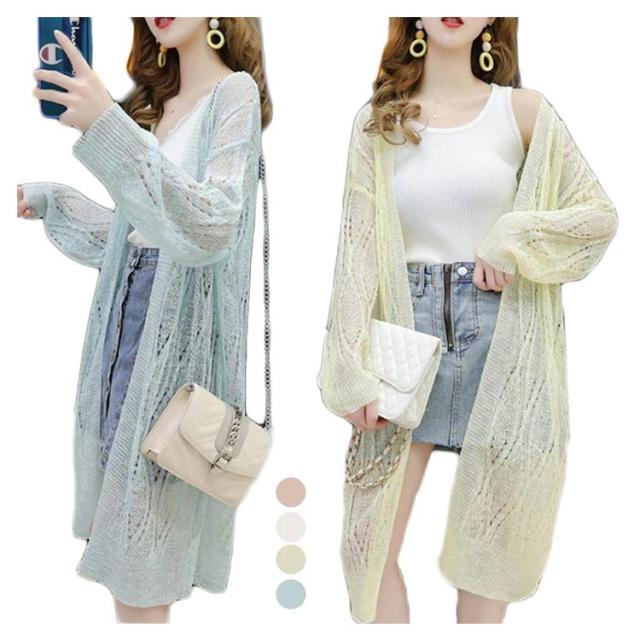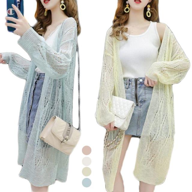 レディース ロングカーディガン ロング丈カーディガン 夏 ミディアム丈 体型カバー 夏 薄手 ニットカーディガン uvカット 無地 ゆったり 長袖 vネック おしゃれ シンプル 送料無料 カジュアル