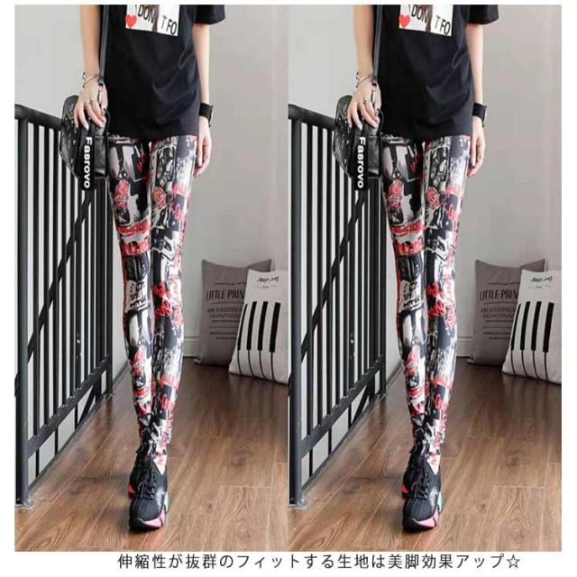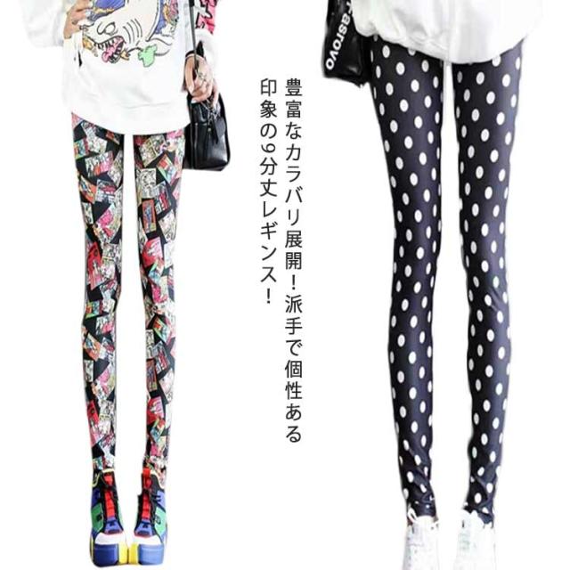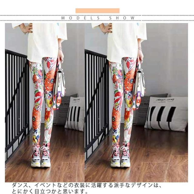 | 豊富なカラバリ展開!派手で個性ある印象の9分丈レギンス! ダンス、イベントなどの衣装に活躍する派手なデザインは、とにかく目立つかと思います。 伸縮性が抜群のフィットする生地は美脚効果アップ☆ シンプルチュニックなどのトップスを合わせて今年っぽいスタイルができちゃいます。 春夏に活躍するさらっとした肌ざわりが気持ちいいitem。 | |