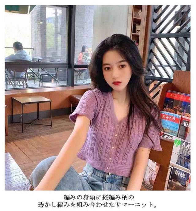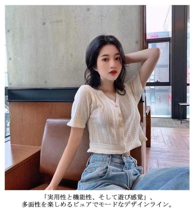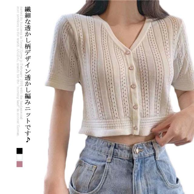 送料無料 ニット レディース 春夏 トップス 半袖 五分袖 サマーニット 透かし編みニット 薄手 涼しい おしゃれ 着回し 高見え 透け