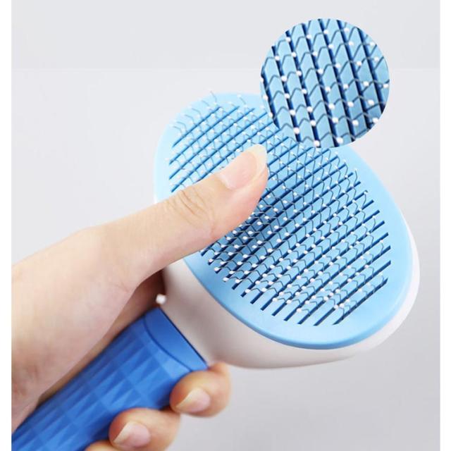 | 曲がったステンレス針のデザインのペット用ブラシです。 背面にボタンがあり、ワンタッチで落ちた抜けた毛を押し出すことができます。 高密度に配置されたニードルビーズによる心地よくマッサージできる。 ステンレス製の櫛針は壊れにくく、耐久性に優れています。 もつれを軽減し、換毛期の除毛、ノミ・ダニの予防に効果的です。 | |
