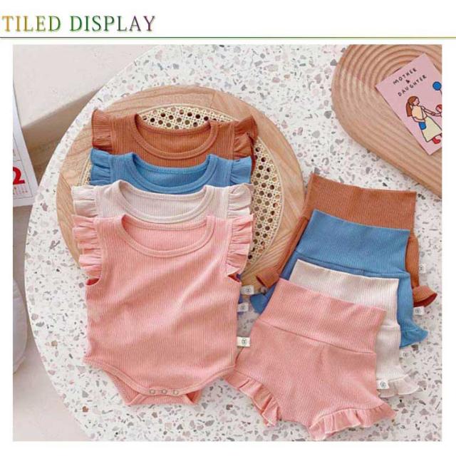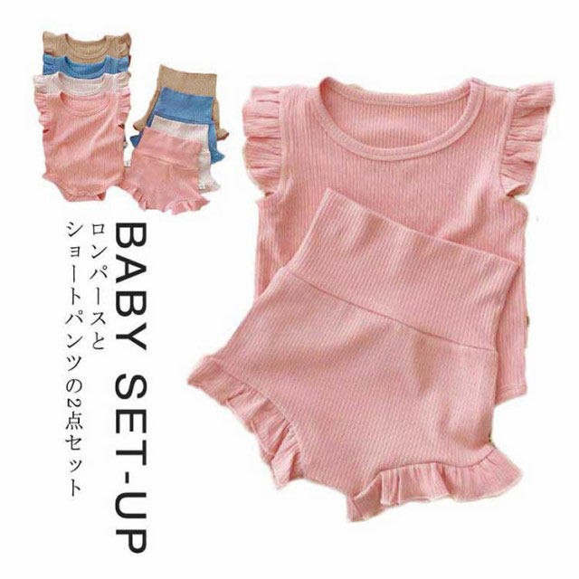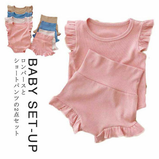 ベビー ロンパース セットアップ 女の子 2点セット ロンパースとショートパンツ 赤ちゃん ロンパース カバーオール 夏用 つなぎ ボディスーツ 肌着 幼児 新生児 ベビーウェア ベビー服 出産祝い パンツセットアップ 部屋着 ルームウェア 送料無料