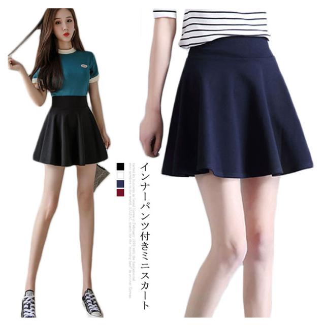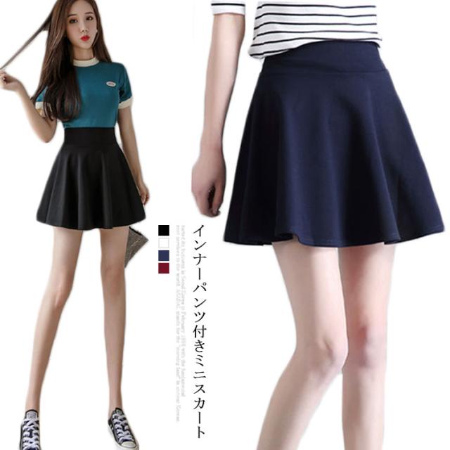 インナーパンツ付き フレア ミニスカート レディース ミニ スカート ボトムス Aライン フレア ウエストゴム 無地 ボリューム シンプル 可愛い セクシー インナーパンツ 大きいサイズ ショート スカート 送料無料 着回し 定番 春 夏