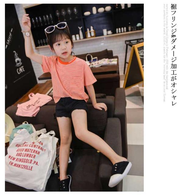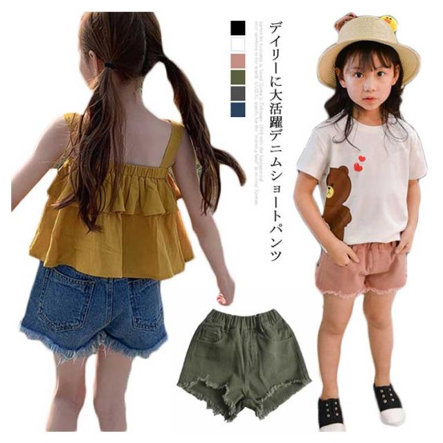 デニム ショートパンツ キッズ 子供服 女の子 デニム ショートパンツ ウエストゴム ガールズ ジュニア カットオフデニム フリンジデニム カジュアル 夏 送料無料