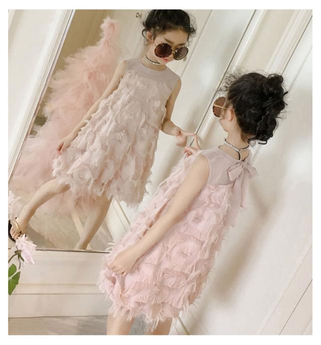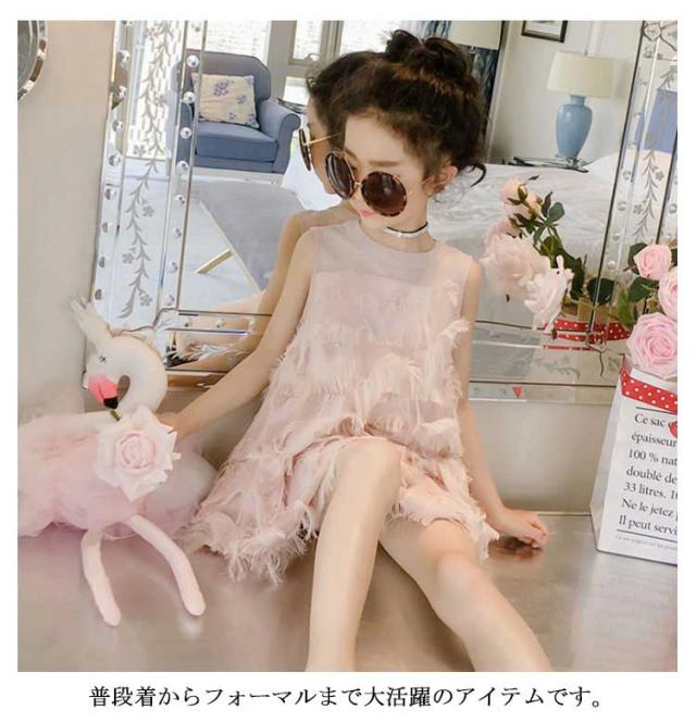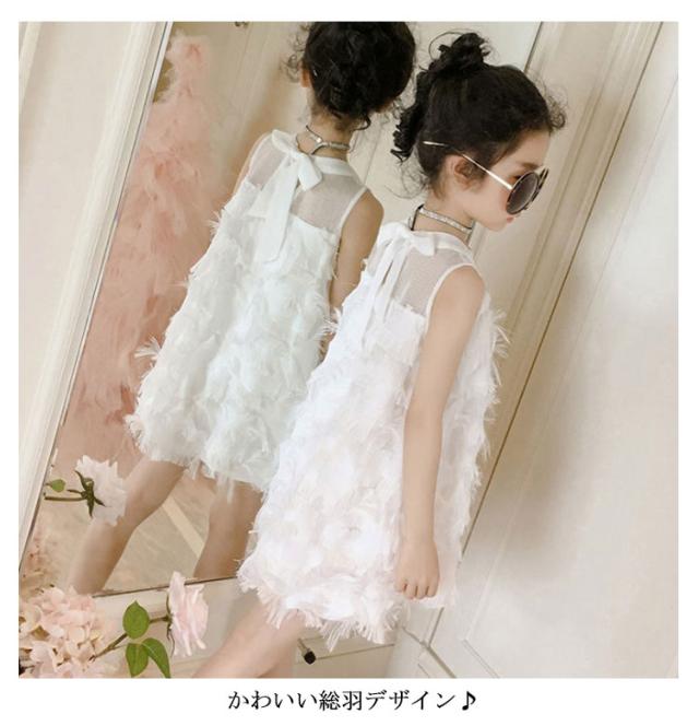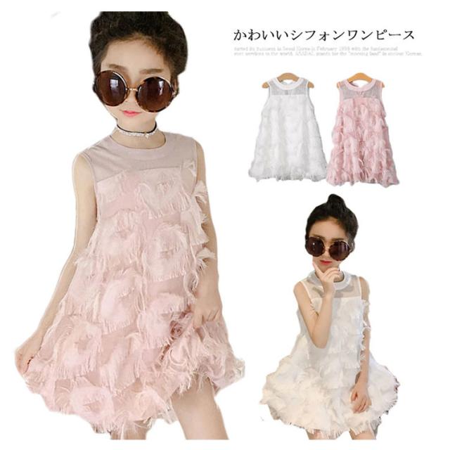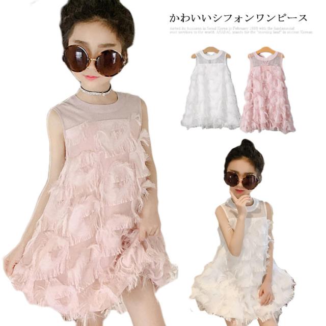 シフォンワンピース キッズ ワンピース 女の子 ワンピ ノースリーブ 子供服 裏地有り プリンセス 羽 ジュニア 無地 送料無料 110 120 130 140 150 160 夏 韓国ファション 結婚式 発表会 演出