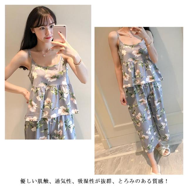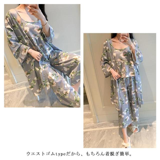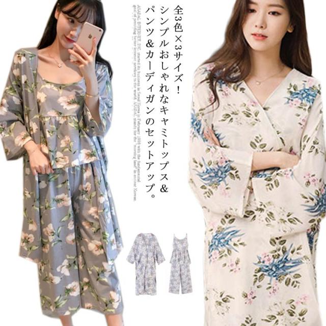 ルームウェア セットアップ ナイトウェア キャミソール カーディガン パンツ 3点SET レディース 部屋着 花柄 春夏 夏 かわいい 送料無料