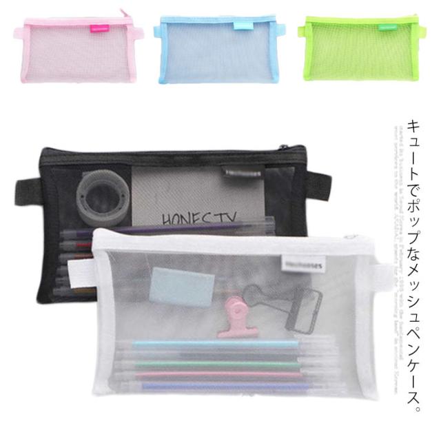 ペンケース 透明ペンケース メッシュ ペンポーチ ペンケース 透明 薄型 筆箱 クリア ペンケース 半透明ペンケース 文房具 筆入れ マスク 小物入れ 化粧ポーチ コスメポーチ 大容量 通勤 通学 おしゃれ 無地 中学生 入学祝い 送料無料