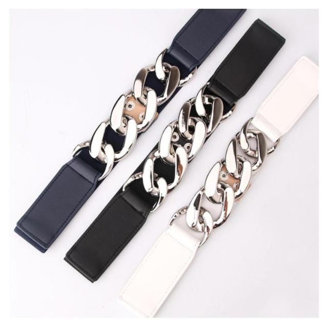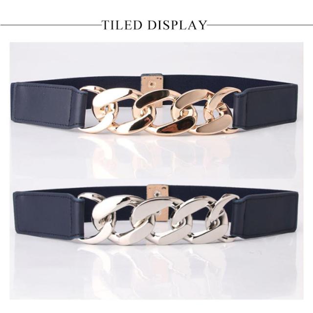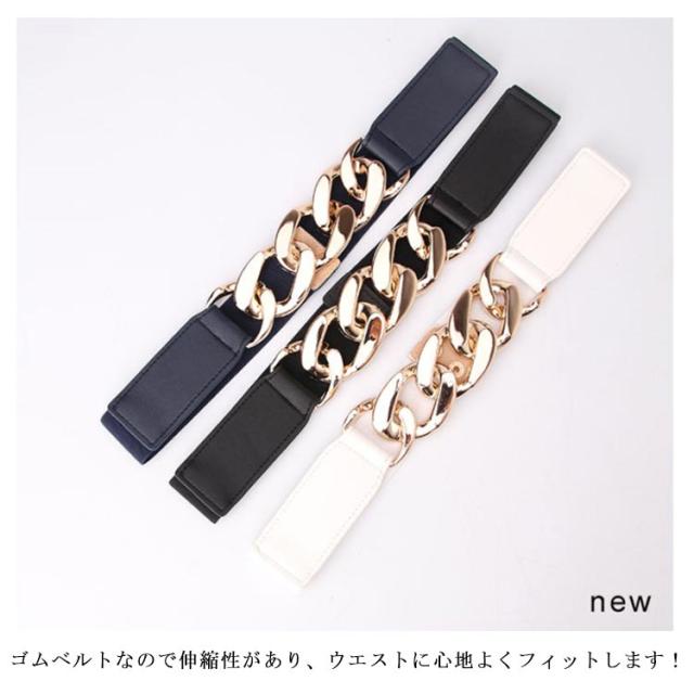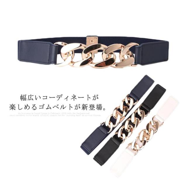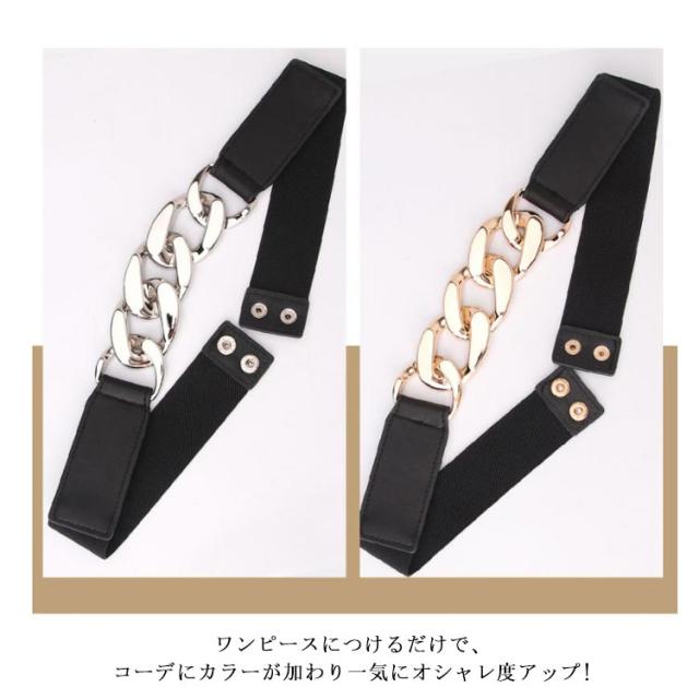 ゴムベルト サッシュベルト ウエストマーク レディース 女性 女子 チェーン ストレッチ 伸縮 ファッション小物 服飾雑貨 パンク風 カジュアル お洒落 送料無料