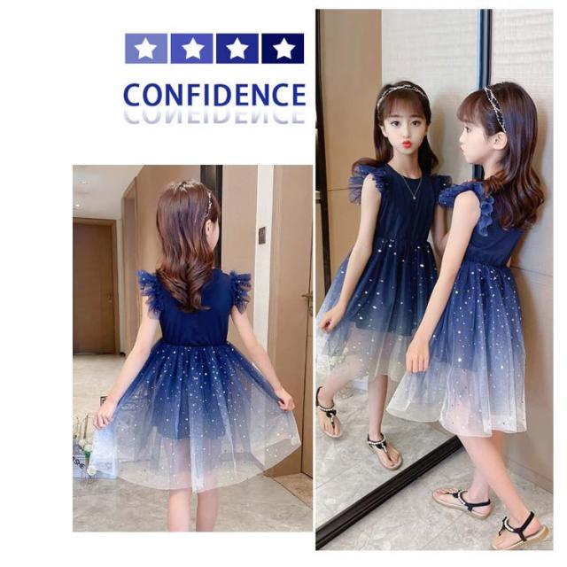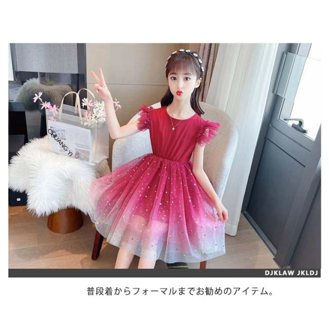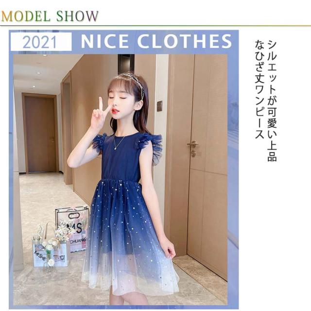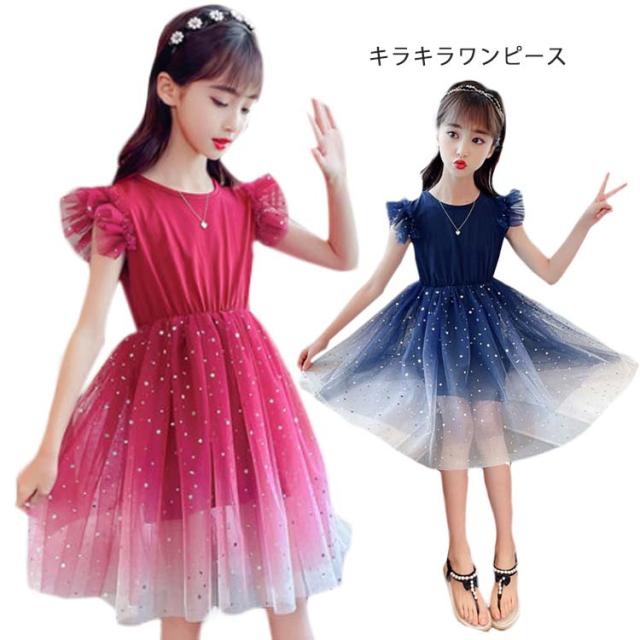 ワンピース 子供服 ノースリーブワンピース キッズ チュールスカート 女の子 プリンセスドレス フリル キラキラ ジュニア 上品 夏 フリル 発表会?送料無料