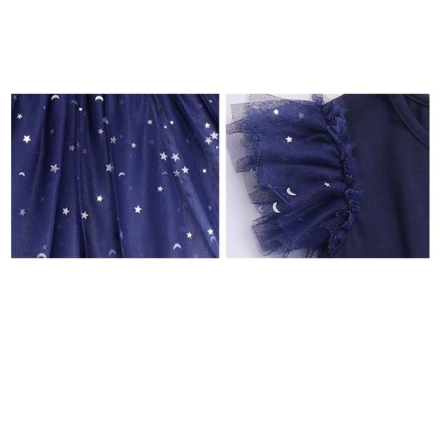 | キラキラワンピース シルエットが可愛い上品なひざ丈ワンピース スカート部分がかわいいキラキラ星月がついてあります。 普段着からフォーマルまでお勧めのアイテム。 | |