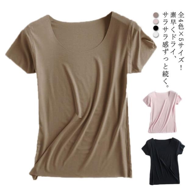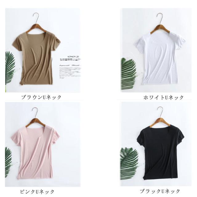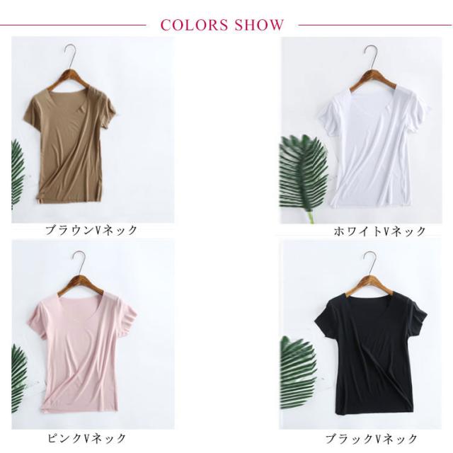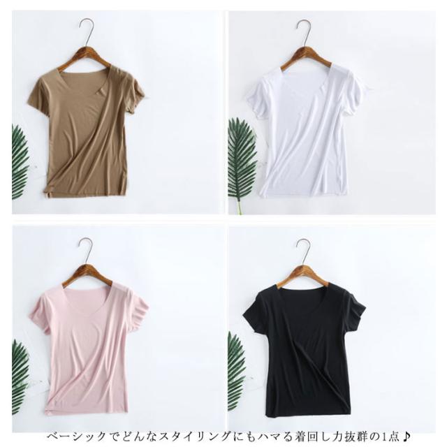 全4色×5サイズ!半袖Tシャツ レディース Tシャツ インナー シームレスtシャツ 半袖 T 無地tシャツ Vネックtシャツ フィット 誕生日 プレゼント ギフト 記念日 モーダル 夏服 夏物 送料無料