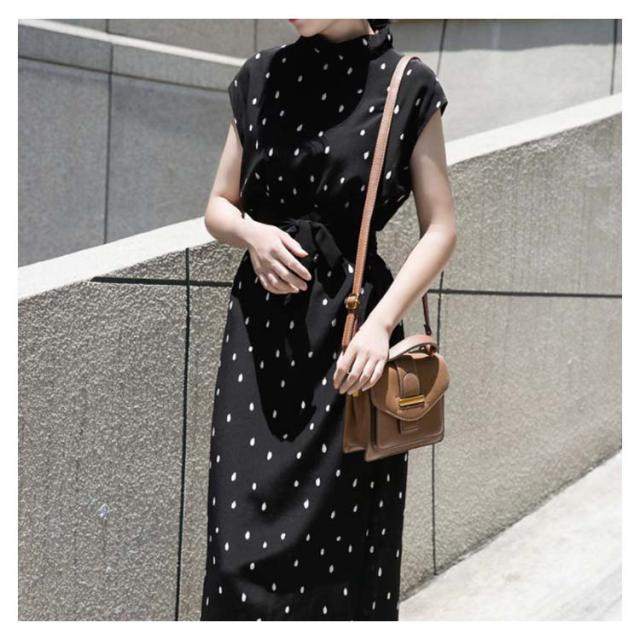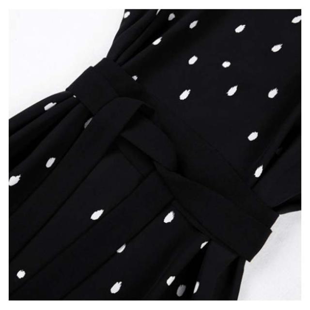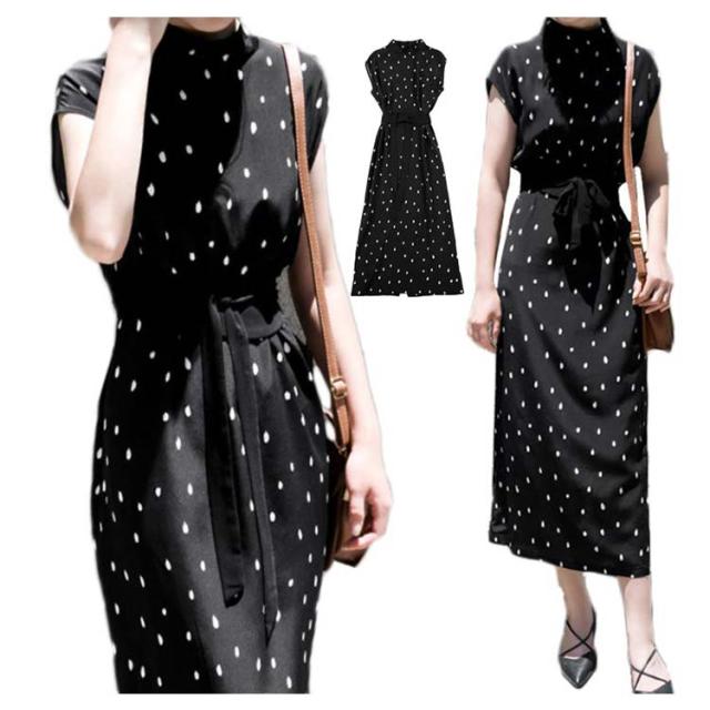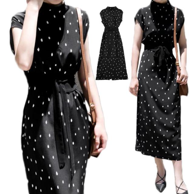 ロングワンピース レディース 夏 ドット柄 マキシワンピース 半袖 丸襟 ストレートワンピース ミモレ丈 ウエスト紐 ロングワンピ 膝下 着痩せ 送料無料 シンプル カジュアル