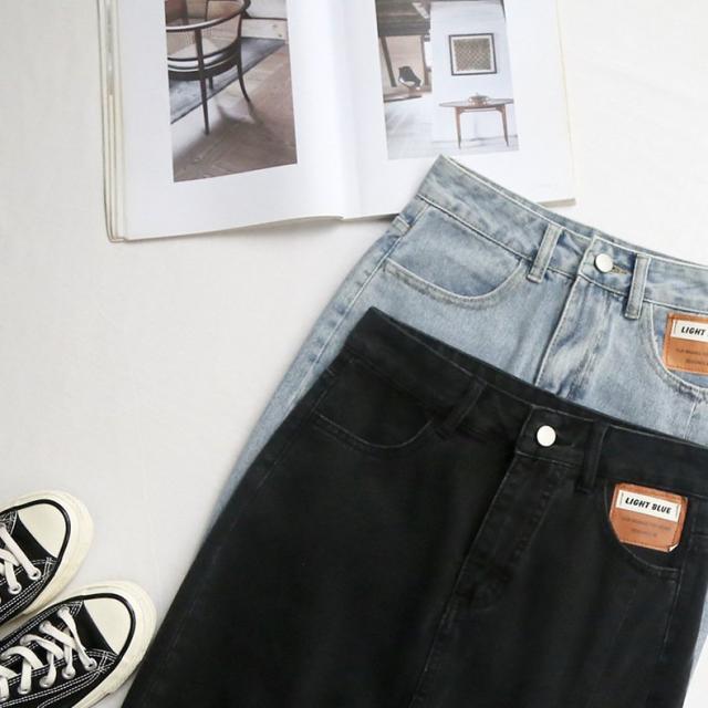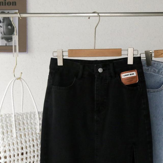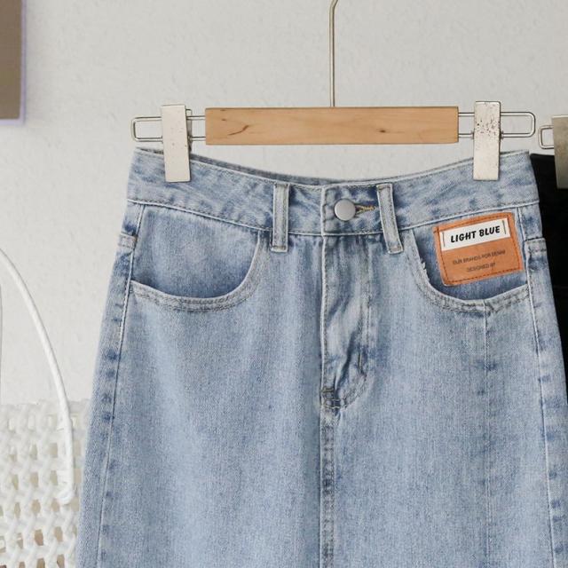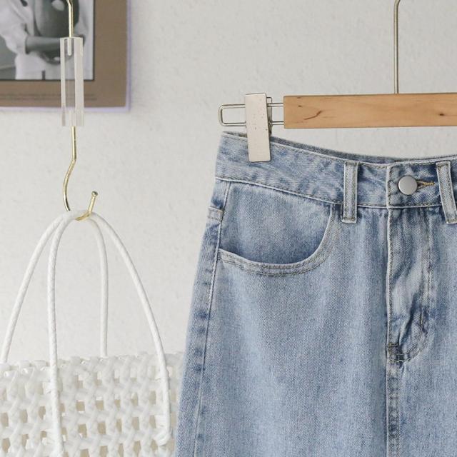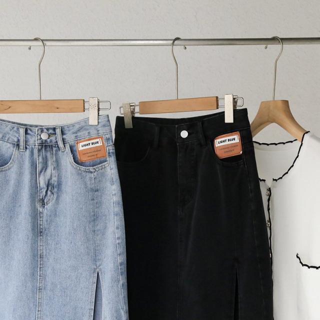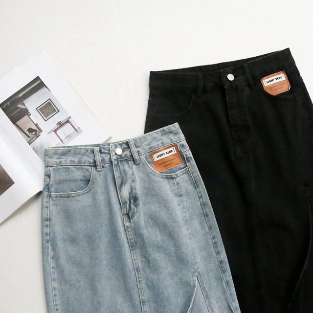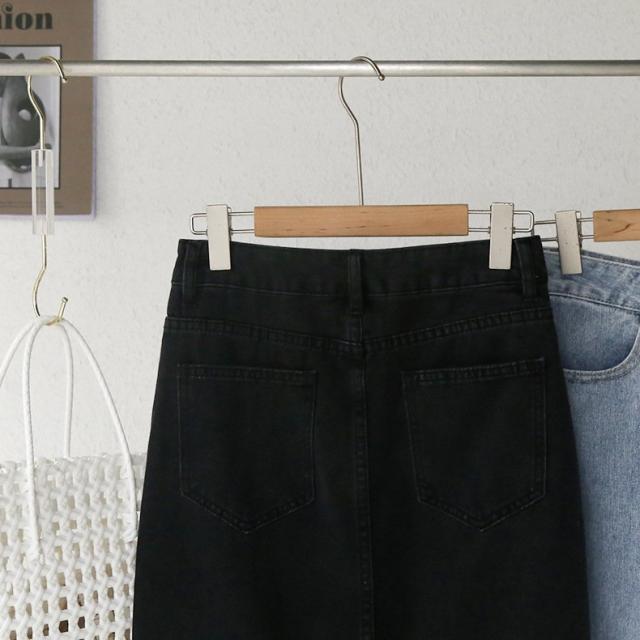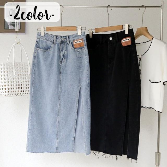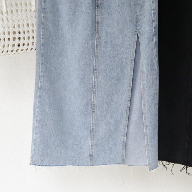 デニムスカート ミディアム丈 レディース 女性 婦人服 ボトムス サイドスリット 膝下丈 ポケット付き カットオフ ウエストボタン ジップアップ ファ