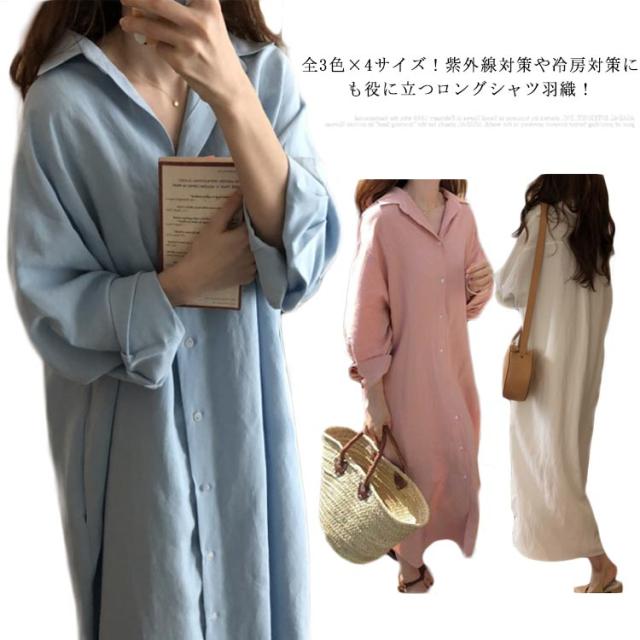 ロングシャツワンピース 2way シャツワンピ 羽織り ロング丈シャツ シャツワンピース ロング丈 マキシ丈 体型カバー 長袖 春 夏 秋 シンプル 無地 大きサイズ 送料無料