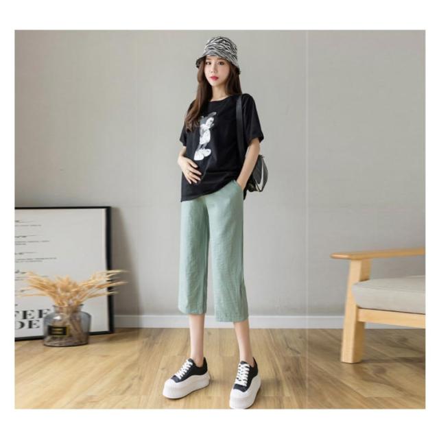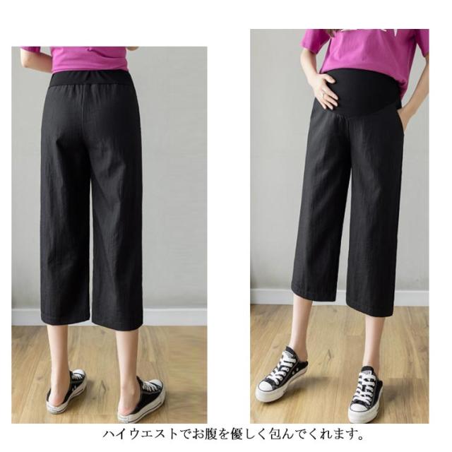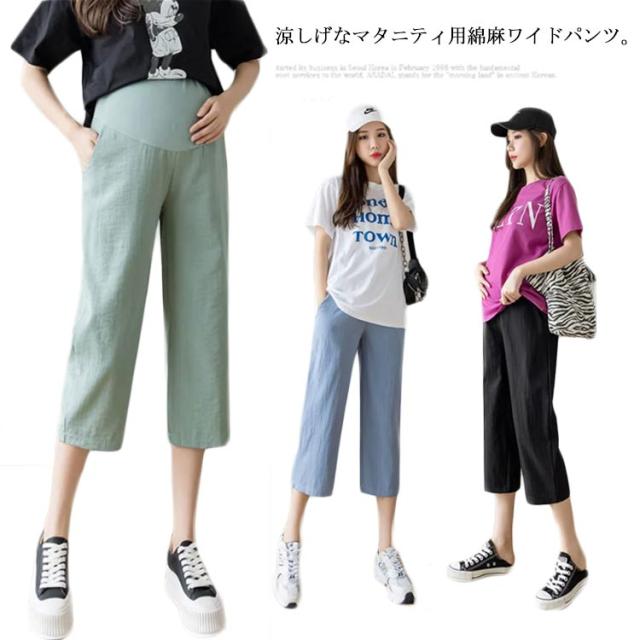 2種類の丈 マタニティ 綿麻パンツ ワイドパンツ 涼しげ ガウチョパンツ 九分丈パンツ 七分丈 マタニティウエア 涼しい 送料無料 夏 夏服 薄手 産前産後 入院着 プレゼント ウエスト調整可 M L XL 2XL