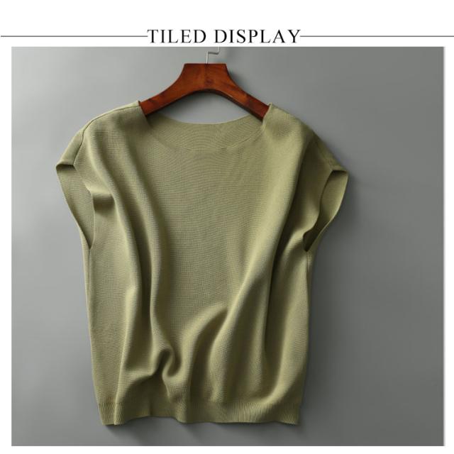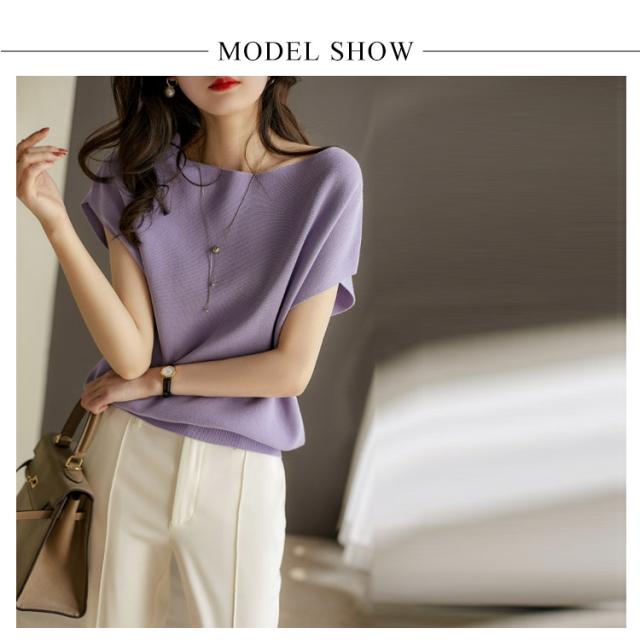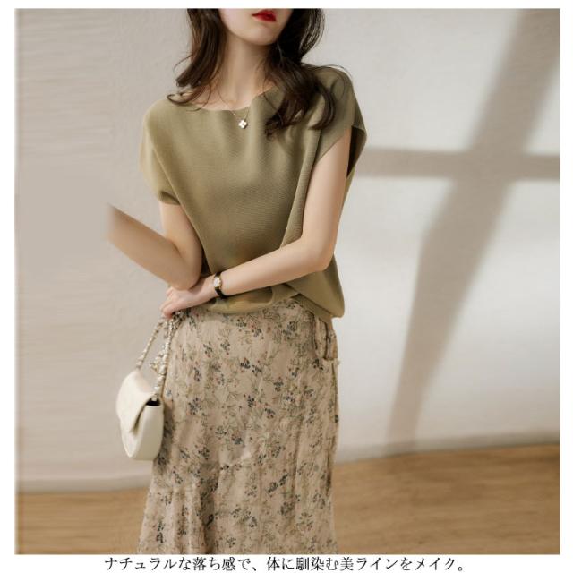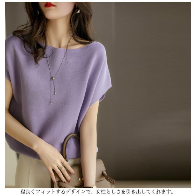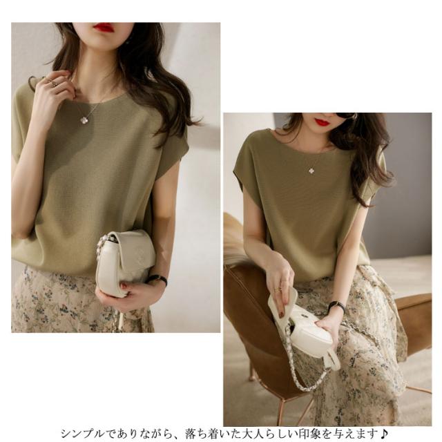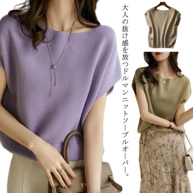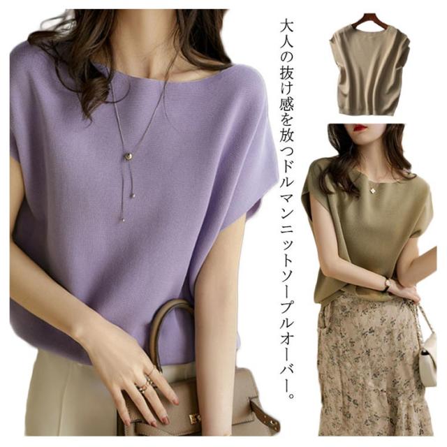 送料無料Tシャツ ニット レディース ドルマンTシャツ サマーニット ニットTシャツ 半袖 インナー ゆったり ラウンドネック シンプル 無地 お洒落 カジュアル 大人 こなれ感 トップス プルオーバー 春夏 新作