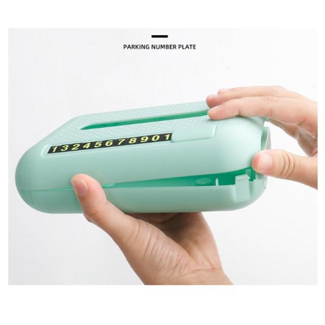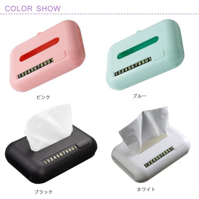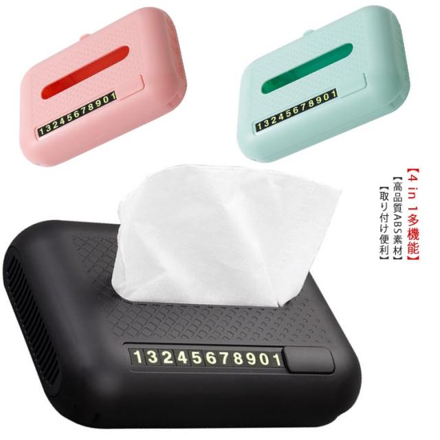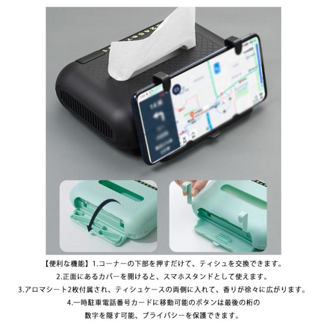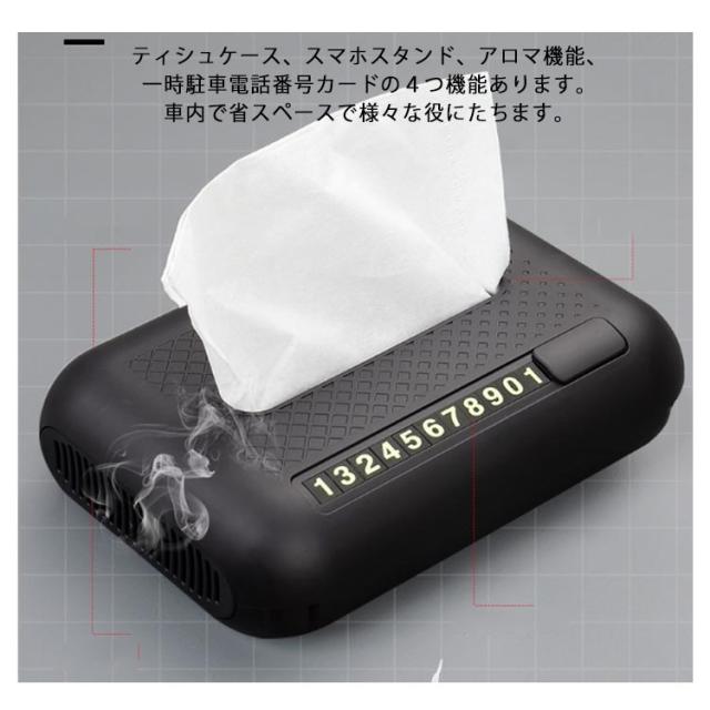 車用 4 in 1 ティッシュケース スマホスタンド アロマ機能 一時駐車電話番号カード ABS製