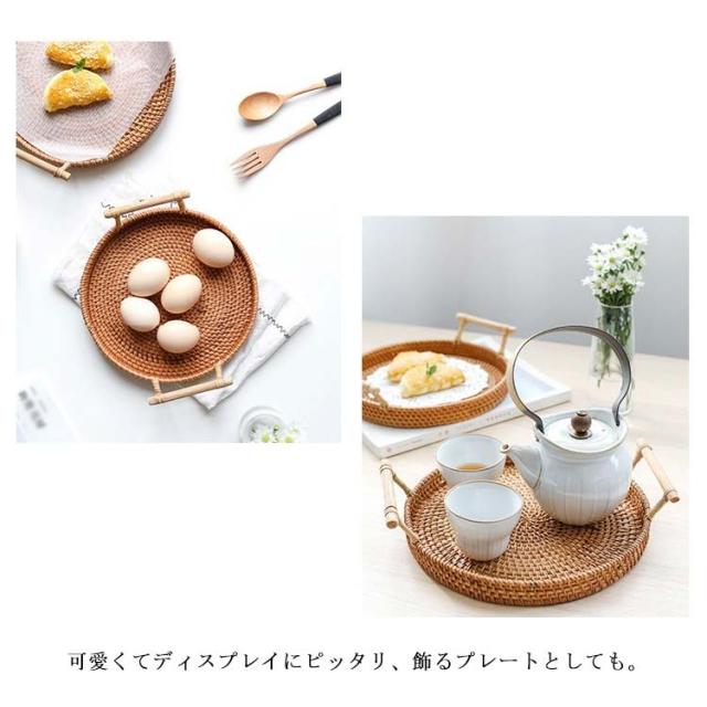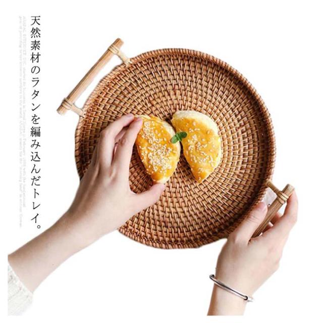 ラタントレイ トレー ラウンド 丸形 取っ手付き おしゃれ かわいい カフェトレイ インテリア バスケット バリ 雑貨 アジア雑貨 キッチン かご ナチュラル シンプル おしゃれ 新生活