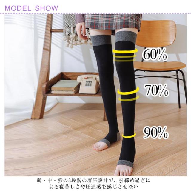 | 履いて寝るタイプの美脚効果があるのロング着圧ソックス! 弱・中・強の3段階の着圧設計で、引締め過ぎによる寝苦しさや圧迫感を感じさせない 着けて寝るだけで足のむくみ・疲労をスッキリ解消することができる。 血行を刺激して血流の流れをスムーズにして、スッキリ美脚に。 つま先なしのオープンデザインなので、湿気や熱を放散するすることができる。 太ももでとまるロングサイズで、の対策にも最適です。 | |