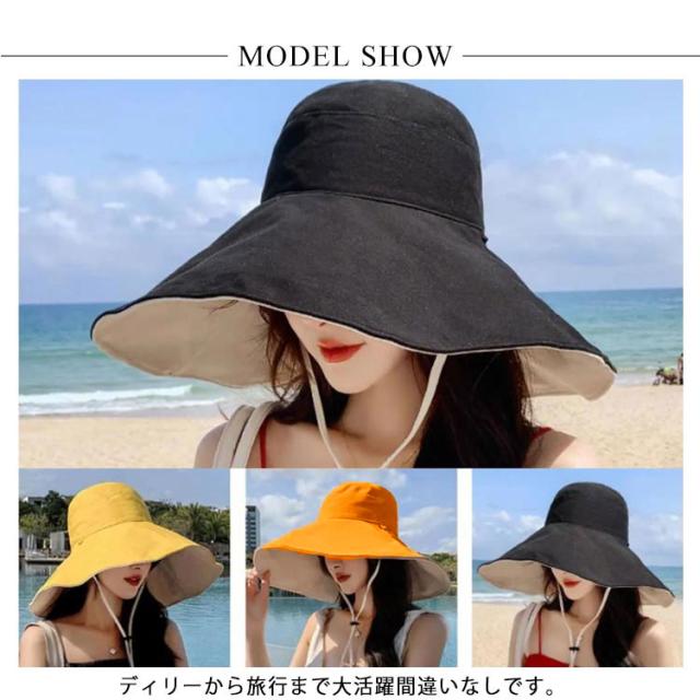 UVカット ハット レディース 女性 帽子 つば広 ぼうし リバーシブル あご紐 折りたたみ 春 夏 紫外線対策 日よけ 熱中症 エレガント おしゃれ クラシカル 送料無料 可愛い カジュアル おでかけ デート デイリー 海 プール アウトドア
