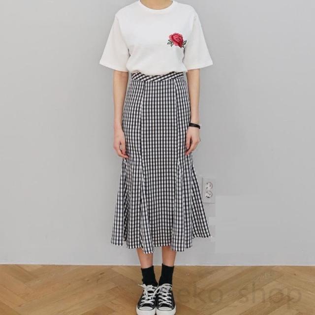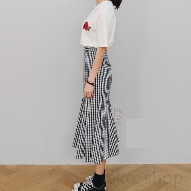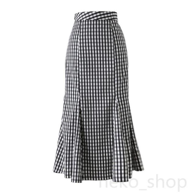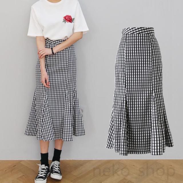 カジュアル 夏 人魚マーメイド チェックスカート タイトスカート ハイウエスト 着痩せ ロングスカート Aライン 体型カバー 通勤通学 大きいサイズxs-3xl