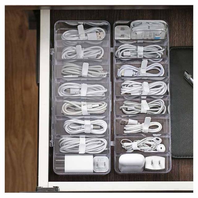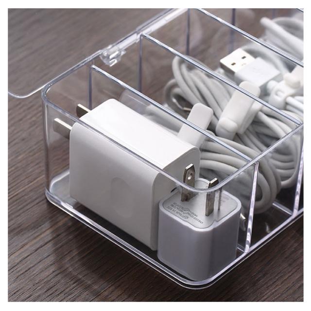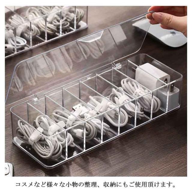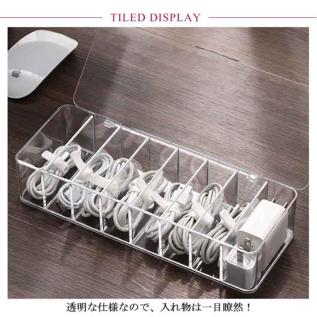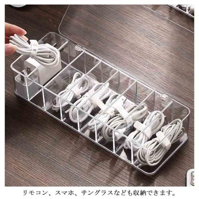 | 散らかりがちなケーブルをたっぷり収納するケース。 透明な仕様なので、入れ物は一目瞭然! 蓋なし/蓋つきの2種類があり、お好きのように選んでいただけます。 リモコン、スマホ、サングラスなども収納できます。 コスメなど様々な小物の整理、収納にもご使用頂けます。 | |