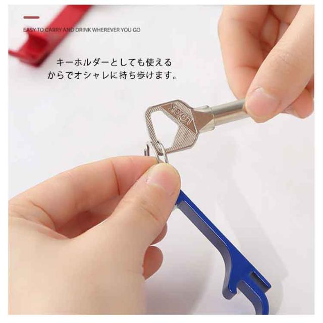 | 鍵やカバンに付けて持ち歩けるからとても便利な栓抜き。 キーホルダーとしても使えるからでオシャレに持ち歩けます。 キッチンにぶら下げるから収納する場所も取らないボトルオープナー。 軽量で丈夫なアルミ合金を採用し、長持ち使えるのも嬉しいポイント。 | |