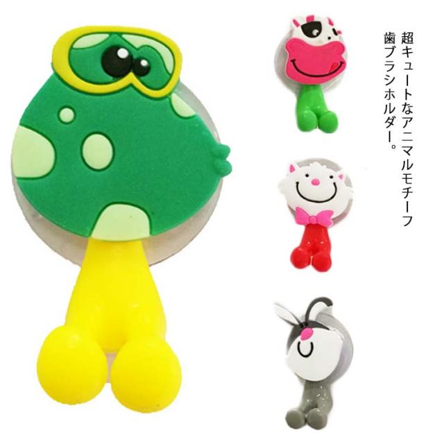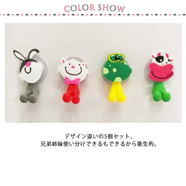 可愛い 歯ブラシホルダー 5種類 セット 可愛い 動物 アニマル 子供 キッズ 歯ブラシスタンド 吸盤式 送料無料 歯みがき 兎 豚 牛 猫 蛙 ループタオルフック
