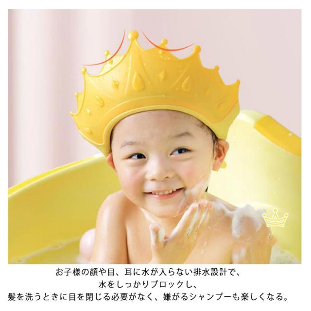 ベビー シャンプーハット バスハット 送料無料 シャンプーキャップ サイズ調整可能 洗髪用 防水帽 シャワー キャップ 目口耳保護 幼児 王冠 クラウン