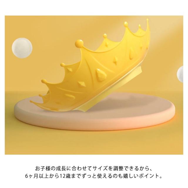 | 水が後ろに流れ、逆流防止のシャンプーハット。 可愛い王冠デザイン、お子様のバスタイムを可愛く演出。 お子様の顔や目、耳に水が入らない排水設計で、水をしっかりブロックし、髪を洗うときに目を閉じる必要がなく、嫌がるシャンプーも楽しくなる。 柔らかいシリコンを採用し、頭にぴったりフィットし、つけ心地も良い。 お子様の成長に合わせてサイズを調整できるから、6ヶ月以上から12歳までずっと使えるのも嬉しいポイント。 | |