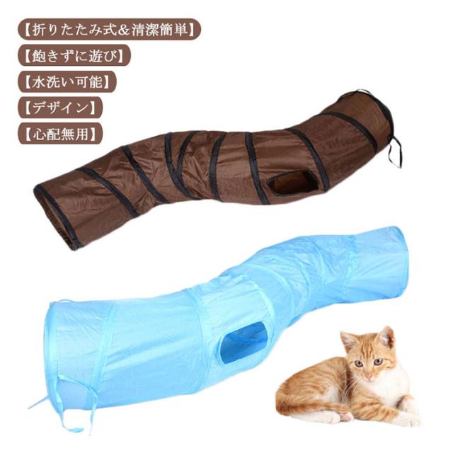 猫 おもちゃ 猫トンネル キャットトイ ネコ用品 水洗い可能 折りたたみ式 収納便利 S型 2穴付きキャットトンネル 長いネコトンネル 猫遊び ストレス発散 運動不足 対策 ペット玩具 ペット用品