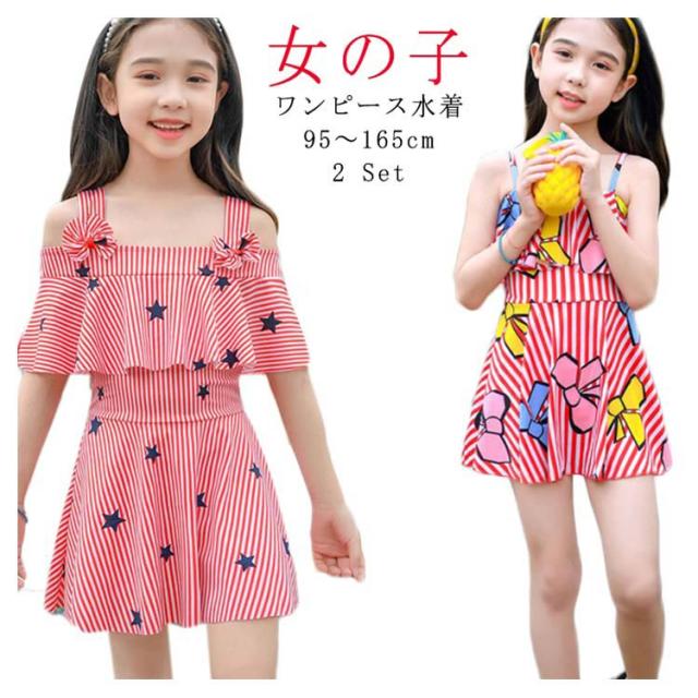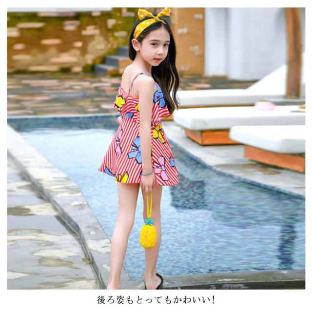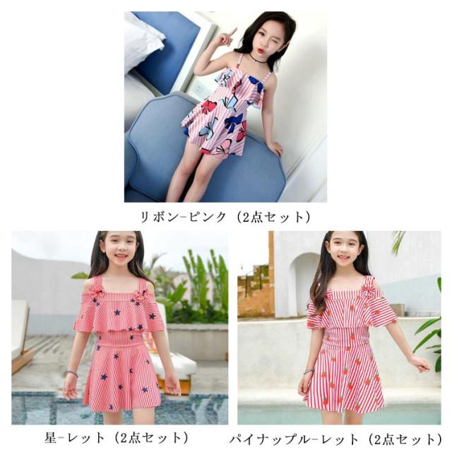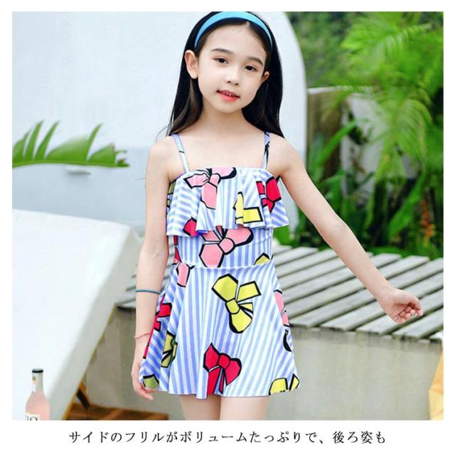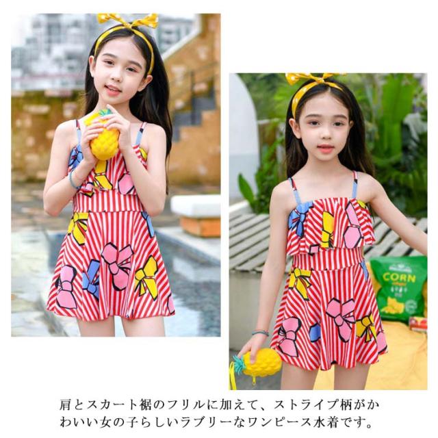 送料無料 子供 水着 女の子 ガールズ ワンピース水着 リボン イチゴ かわいい 90 100 110 120 130 140 150 160 子供水着 キッズ水着 女の子水着 学校 幼稚園 保育園用水着