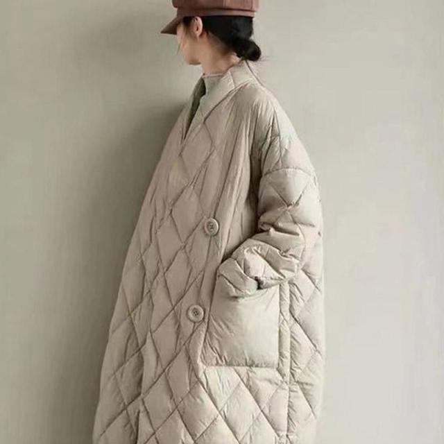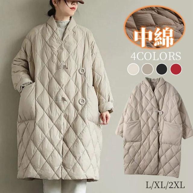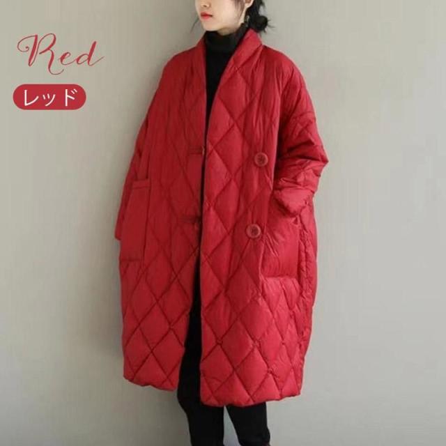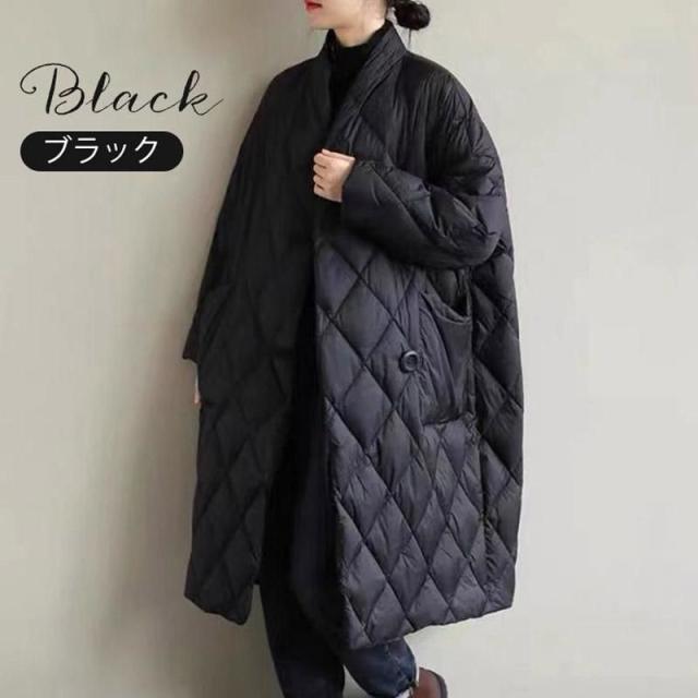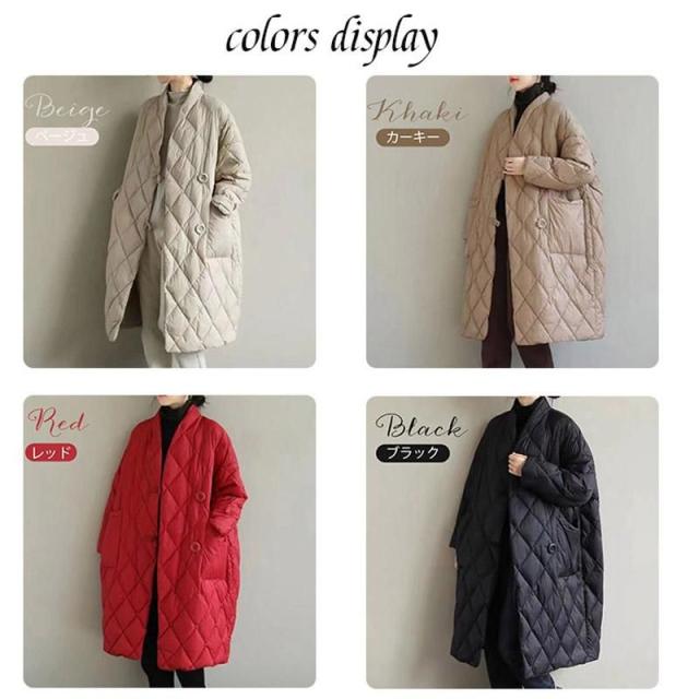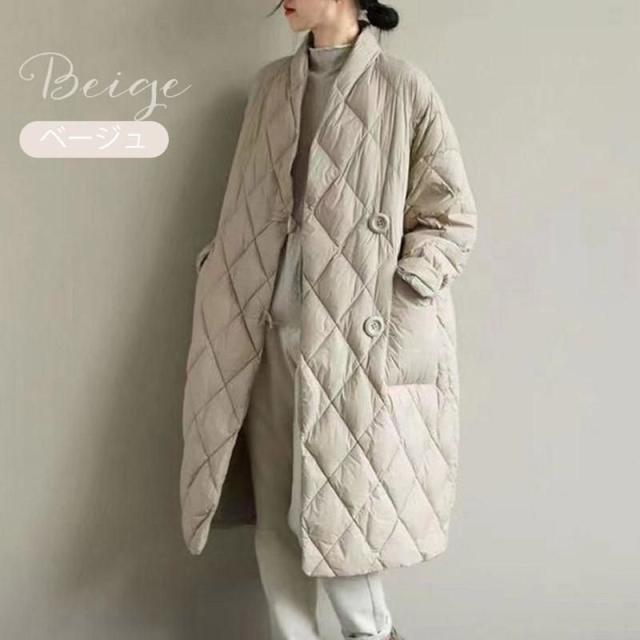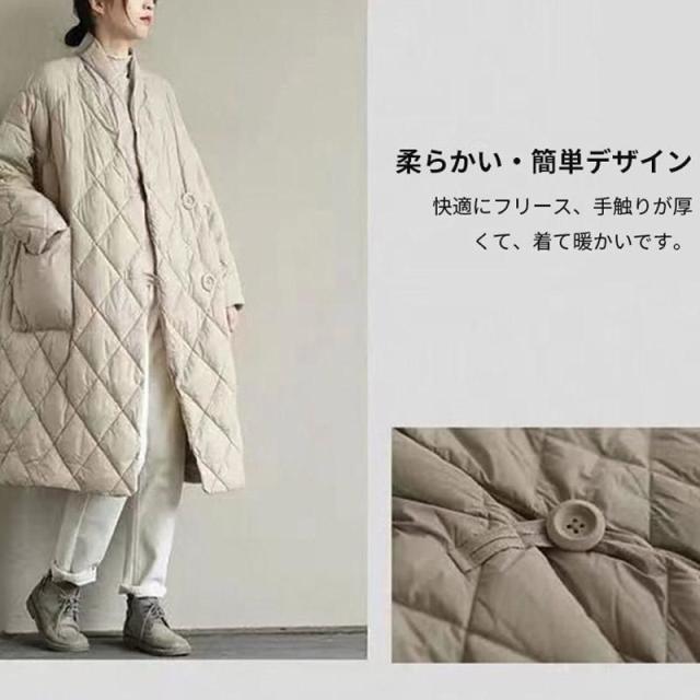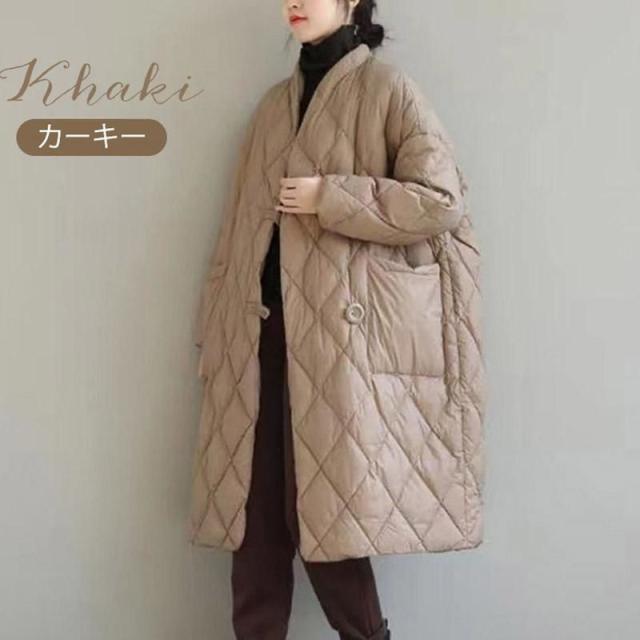 ダウンジャケット レディース キルティングコート アウター ロングコート 体型カバー 厚手 暖かい 防寒 羽織り 防寒 軽量 無地 秋冬