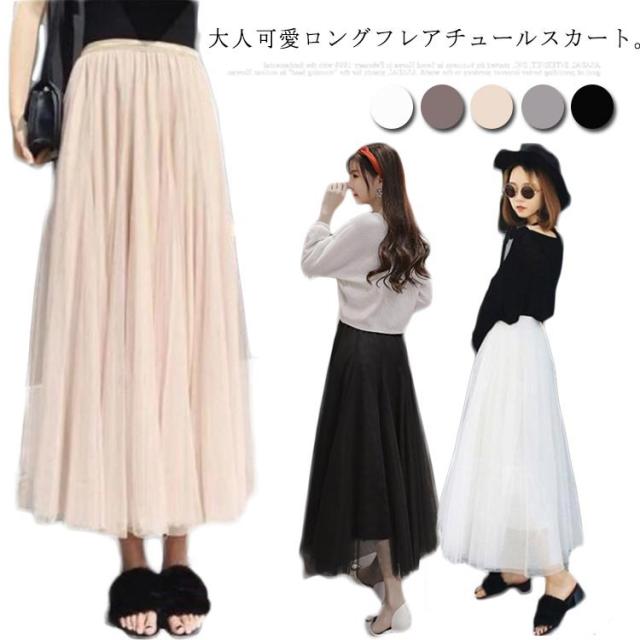 チュールスカート ロング レディース マキシスカート ロングスカート フレアスカート 体型カバー ボリューム マキシ丈 スカート 大人 ウエストゴム 送料無料 美チュール 裏地付き 春 夏 広がりすぎない