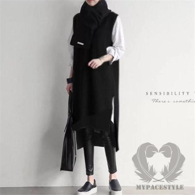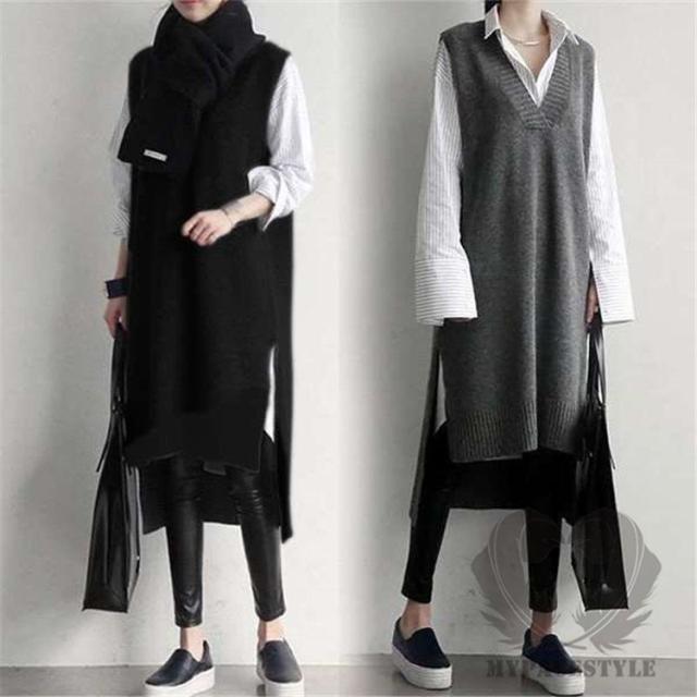 ニットベスト レディース 20代 30代 40代 秋服 ベストワンピース vネック 無地 ロング丈 ノースリープニットベスト セーター 韓国風 体型カバー 通勤 着痩せ 2色