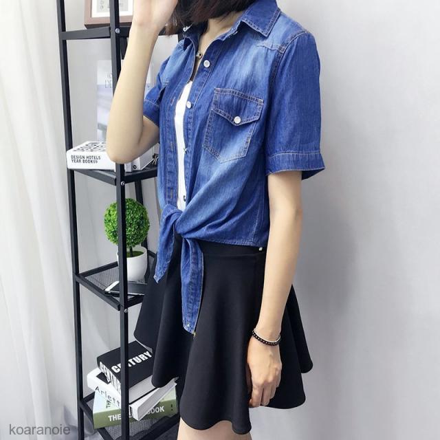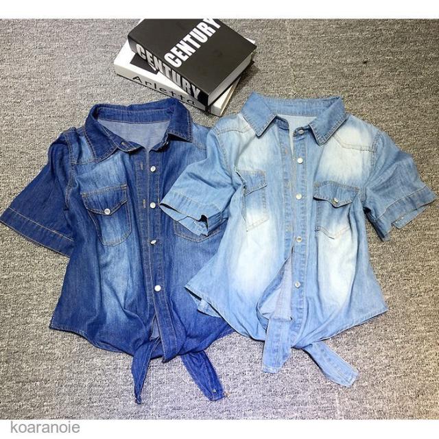デニムシャツ レディース カーディガン ボレロ ダンガリーシャツ アウター カジュアル デニム 人気 半袖 UV 前結び 大きいサイズ