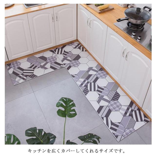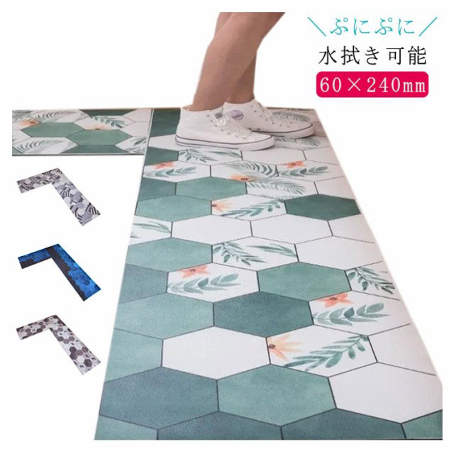 キッチン 台所マット キッチンマット ロングマット 拭ける 水拭き クッションフロア 60×240 北欧 撥水 キッチン マット 長め おしゃれ 清潔 やわらか ぷにぷに 洗濯不要 キッチンファブリック