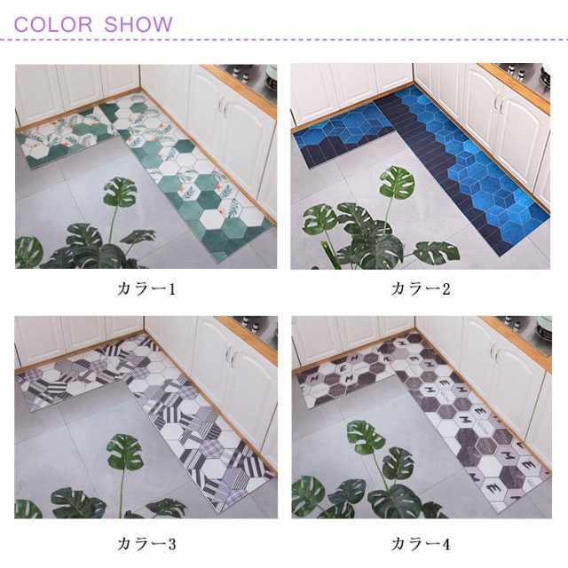 | 汚れが気になる水周り。 このキッチンマットは水分が浸み込まずさっと拭けるのですぐにキレイ。 面倒なお洗濯の手間もなくなります。 ふっくらとしたクッション性があるので、踏み心地も快適です。 長時間の立ち仕事でも、足への負担が軽減されます。 厚みがあってクッション性が高いので、例えばなにか物を落としても、フローリングを傷から守ります。 表面は細かい凹凸になっているので、滑りにくくなっています。 裏面に滑り止めはついていません。 食べこぼしや水気の多いキッチンでも高い抗菌効果がうれしい。 いつでも清潔にお使い頂けます。 ご要望の多い、幅広60cmのタイプ。 キッチンを広くカバーしてくれるサイズです。 | |
