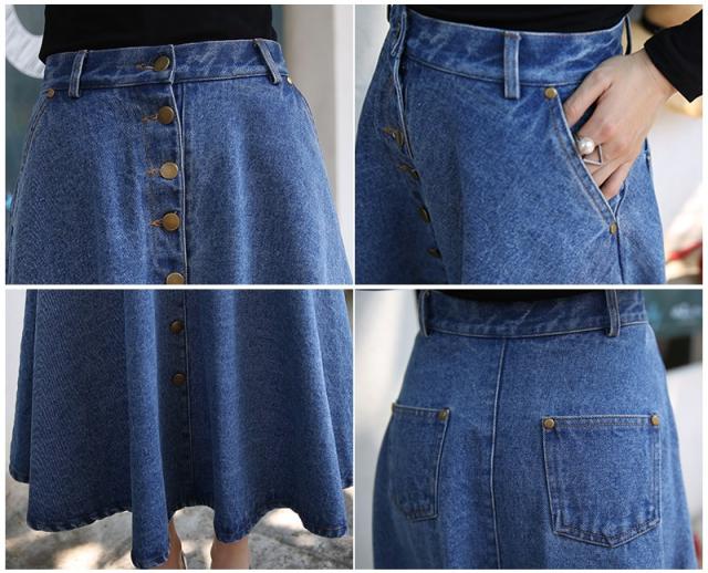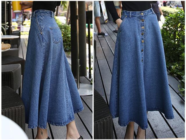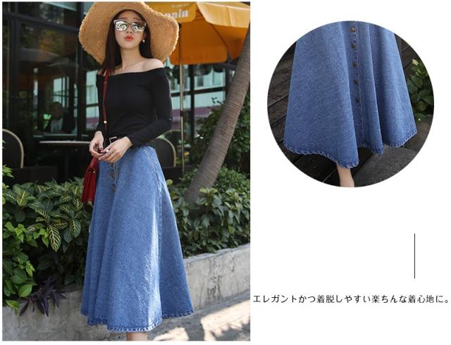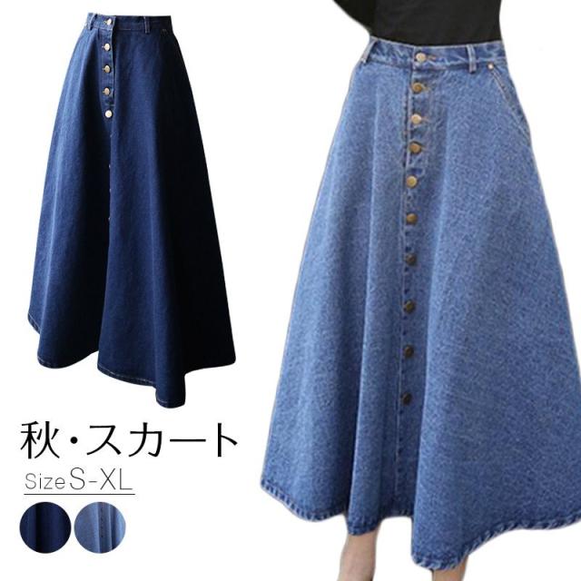 秋・スカート レディースボトムス ひざ丈スカート ハイウエスト Aライン デニムスカート