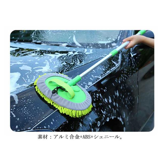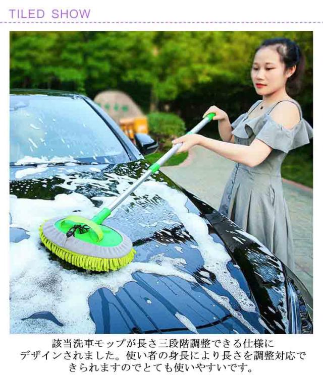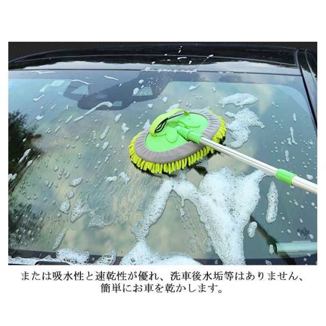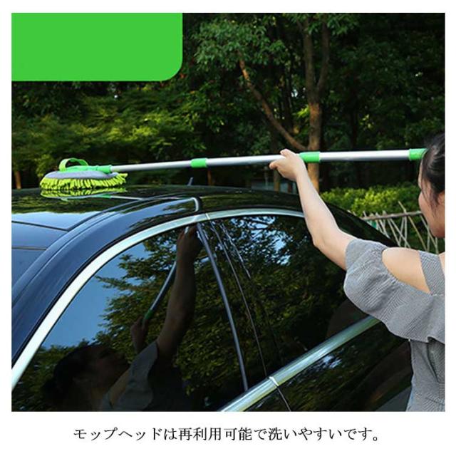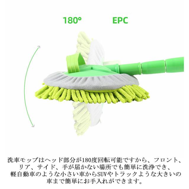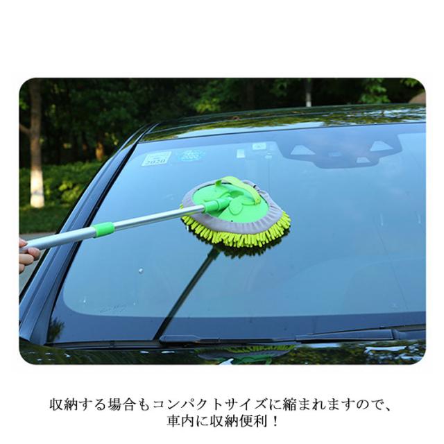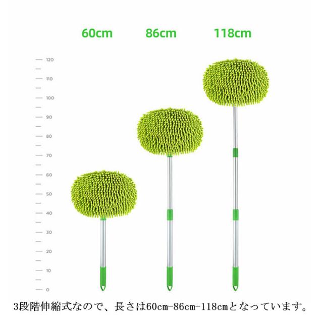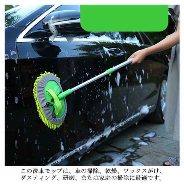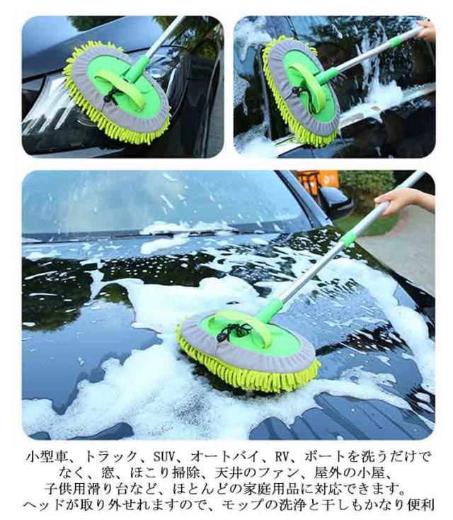 洗車モップ 伸縮式ブラシ 洗車スポンジ 180度回転 三段階長さ調整 洗車用品 ガラス掃除 窓対応 吸水性抜群 洗浄便利 付け替えスポンジ2個付け