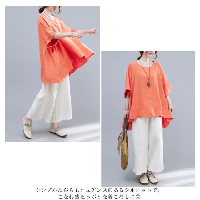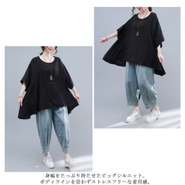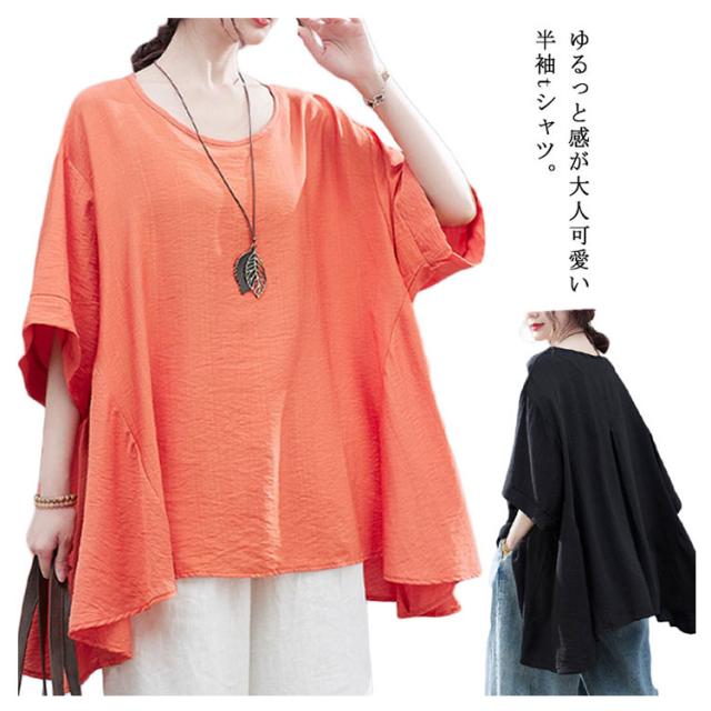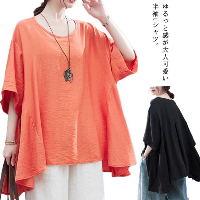 送料無料 ビッグT レディース ビッグシルエットtシャツ 半袖 アシメトリー ロングtシャツ ラウンドネック トップス オーバーサイズ 大きサイズ 無地 tシャツ 夏 夏服 夏物 体型カバー