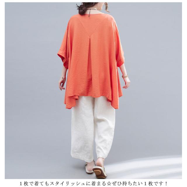 | ゆるっと感が大人可愛い半袖tシャツ。 シンプルながらもニュアンスのあるシルエットで、こなれ感たっぷりな着こなしに◎ 身幅をたっぷり持たせたビッグシルエット、ボディラインを拾わずストレスフリーな着用感。 ヒップをすっぽり包み込むチュニック丈がどんなボトムにも好相性で、スタイルを気にせずに着られるところが嬉しい♪ 柔らかくさらりとした素材でロングシーズン着回せる適度な厚みと肌なじみの良い生地で、安心感のある着心地◎ 1枚で着てもスタイリッシュに着まる☆ぜひ持ちたい1枚です! | |